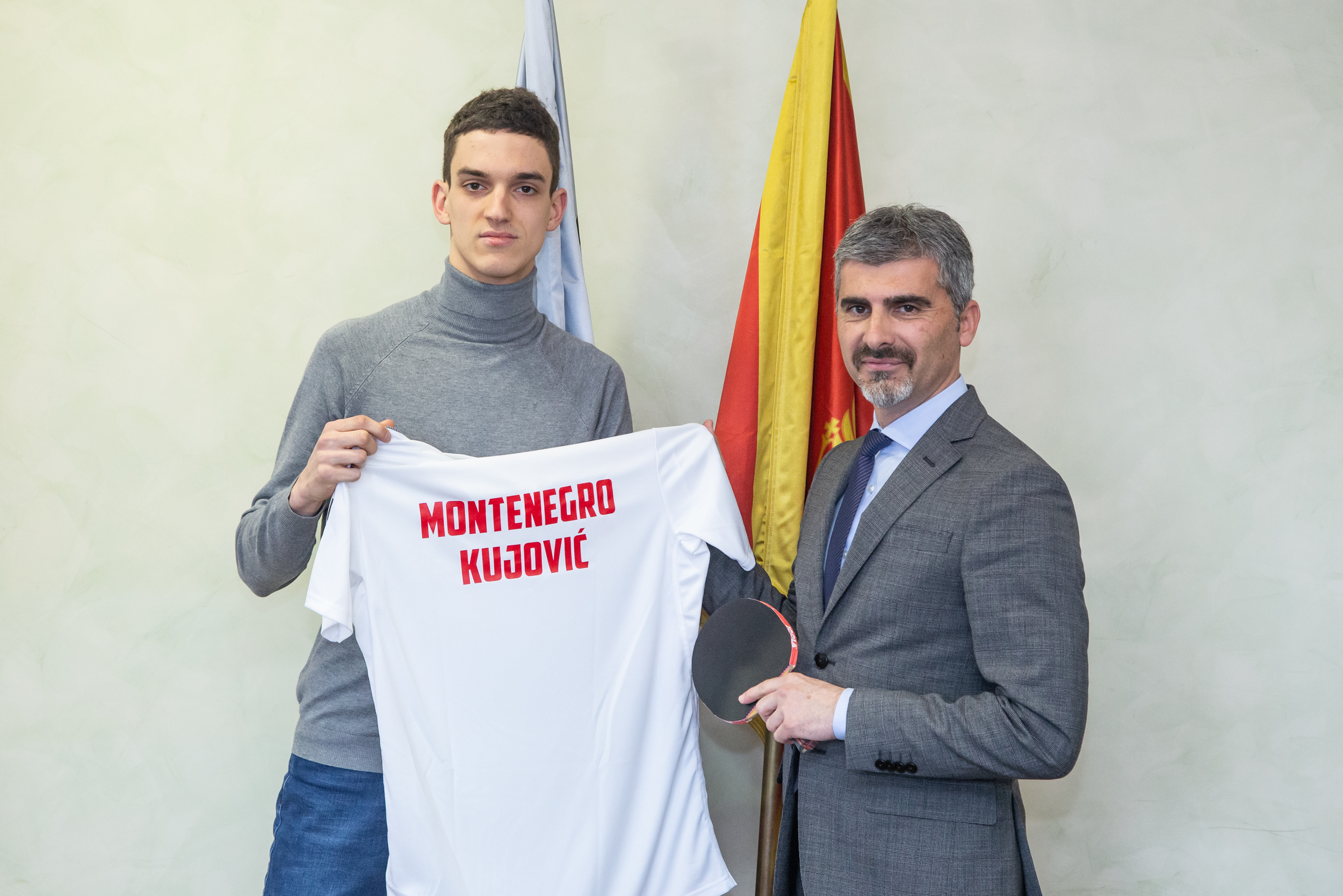 Nakon potpisivanja sponzorskog ugovora, mladi stonoteniser Filip Radović uručio je dres i reket izvršnom direktoru CGES-a, Draganu Kujoviću.