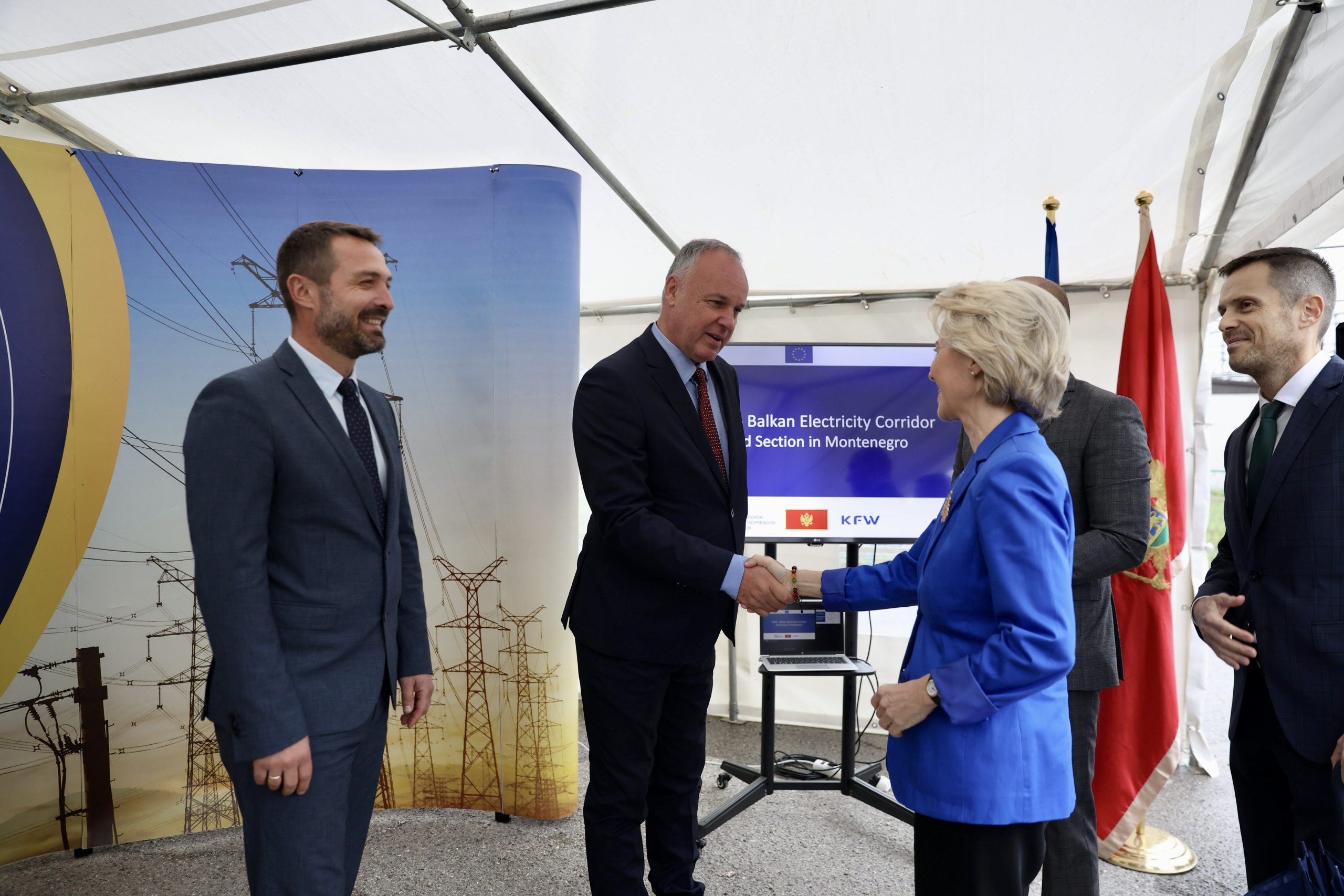 Predsjednicu Evropske komisije Ursula fon der Lajen, ispred Crnogorskog elektroprenosnog sistema dočekali su predsjednik Odbora direktora, Aleksandar Mijušković, izvršni direktor, Ivan Asanović, koji su joj poželjeli dobrodošlicu i izrazili zahvalnost za dodijeljena sredstva koja su upotrijebljena za jačanje interkonektivnih kapaciteta, stvaranje preduslova za priključenje obnovljivih izvora el.energije, povećanja sigurnosti snabdijevanja potrošača u Crnoj Gori…